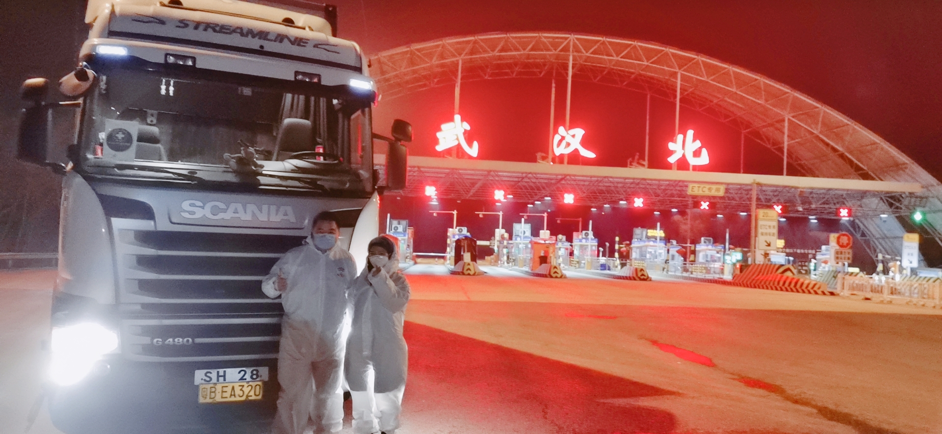 仙桃曾是中国最大的一次性口罩生产基地,有3000多家无纺布、口罩或防护服生产企业,离武汉也不过108.6公里。凌晨两点多,刘迎的重卡载着口罩、防护服和护目镜就到了武汉北收费站。这里有7台私家车和2台120急救车等着他。“这批物资是定点捐赠的,我负责去拉回来,他们负责送到同济、协和医院。”