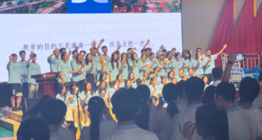 “每当我找不到存在的意义,每当我迷失在黑夜里,夜空中最亮的星,请照亮我前行”,随着歌声的响起,短暂的BB夏令营也迎来了结束,看着志愿者老师们齐聚在舞台中央向我们挥手,同学们拿起手机开着闪光灯作为回应时,那句“教育的意义不是装满一桶水,而是点燃一把火”开始具象化,那一刻,我好像读懂了……